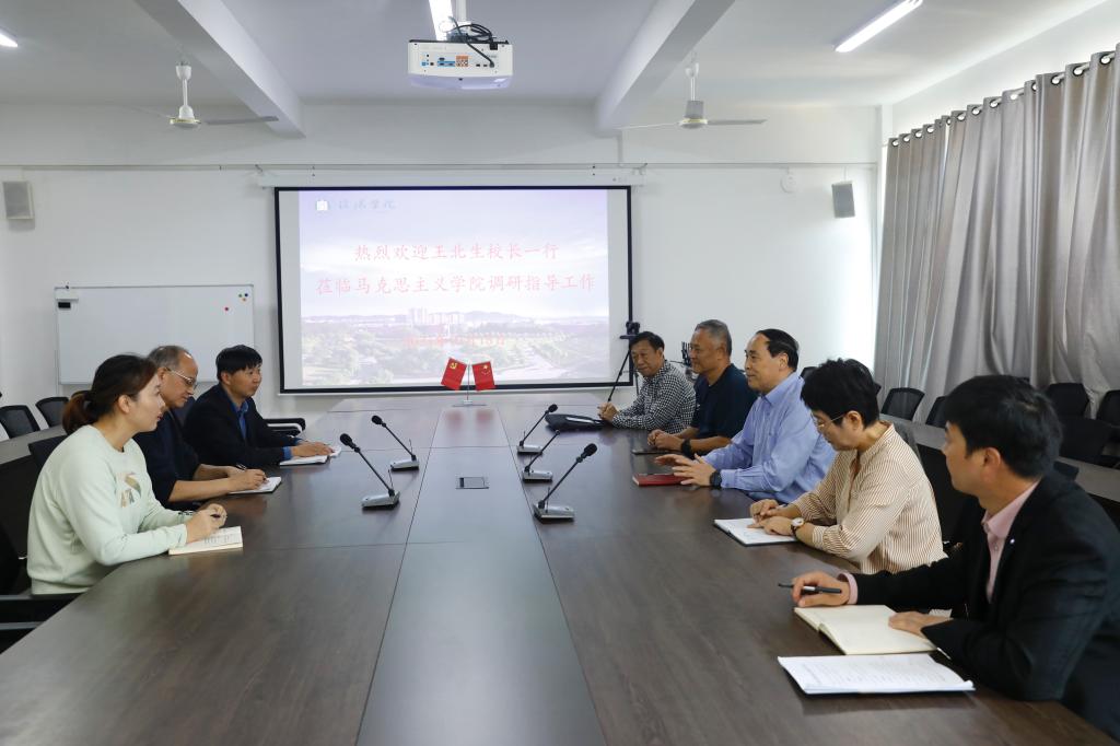 10月18日上午,校长王北生、副校长王强到马克思主义学院调研并召开现场办公会。校长办公室、教务处、人事处、科研处等相关部门负责人陪同调研。
