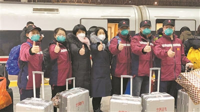 1月26日,接到河北省卫健委通知后,河北医科大学直属第一、第二、第三、第四医院援助湖北医疗队的首批17名队员迅速集结,当晚8时20分便登上了开往湖北的列车。