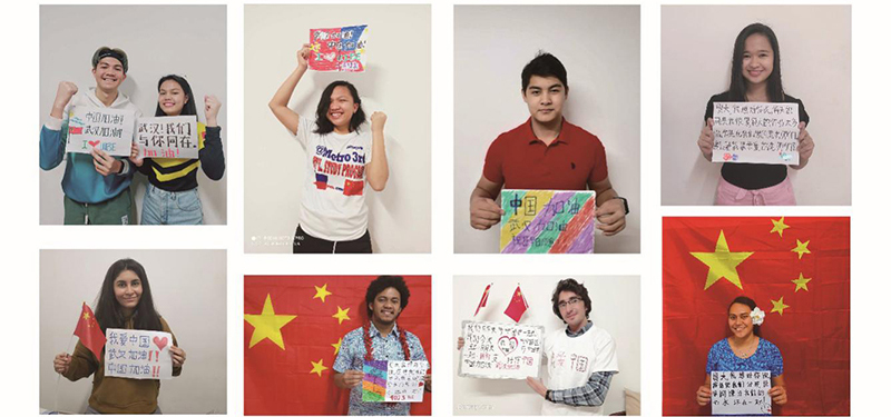摄影组照《我们在一起》,表达了对外经济贸易大学来华留学生,通过自己的绘画创作为中国抗疫加油。