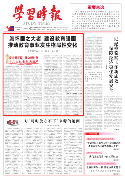 新时代新征程,教育的先导性、基础性、全局性地位作用更加凸显。新的赶考路上,教育系统要更加紧密地团结在以习近平同志为核心的党中央周围,以习近平新时代中国特色社会主义思想为指导,深刻领会“两个确立”的决定性意义,增强“四个意识”、坚定“四个自信”、做到“两个维护”,弘扬伟大建党精神,推动教育高质量发展,加快推进教育现代化、建设教育强国、办好人民满意的教育,以实际行动迎接党的二十大胜利召开,为实现中华民族伟大复兴作出新的更大贡献。(本文刊发于《学习时报》2022年05月06日第1版)